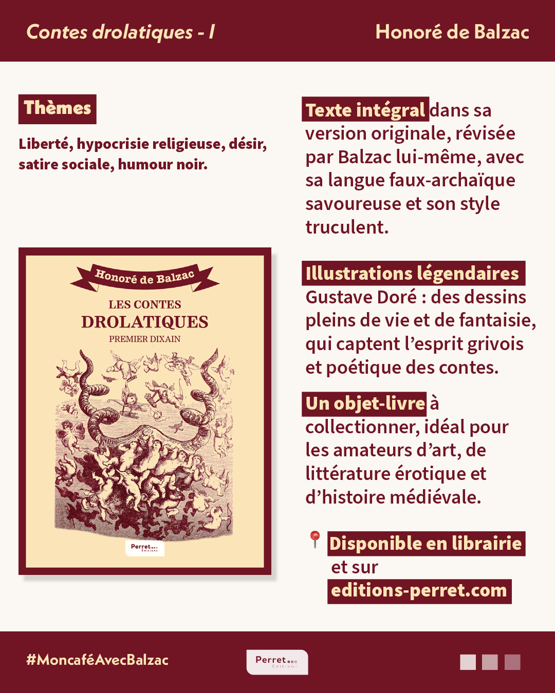 Dans ce Premier Dixain, le maître du réalisme se fait conteur malicieux et impudent. Il nous entraîne dans les ruelles mal famées de la Touraine, dans les alcôves des courtisanes, dans des monastères peu chastes et dans des châteaux où l’amour se conjugue avec la tromperie. Les maris cocus, les amants ridicules et les clercs débauchés s’y bousculent, sous le regard complice de Gustave Doré, dont les illustrations de 1855 – tantôt licencieuses, tantôt grotesques – soulignent avec brio la verve paillarde de Balzac.
