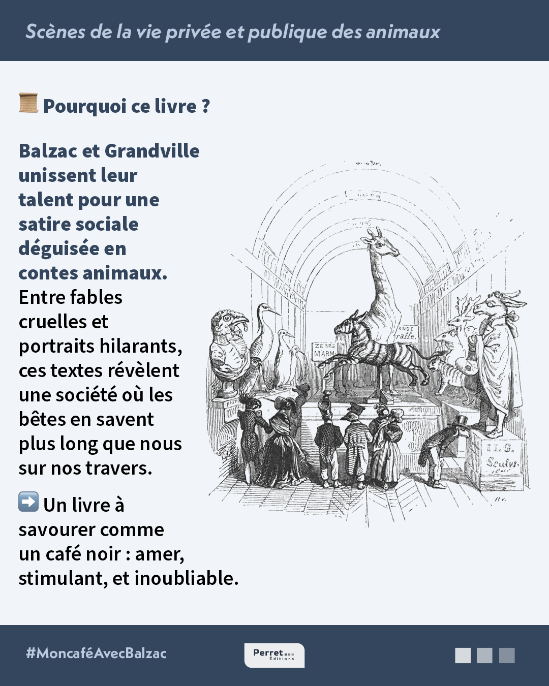 Élaborés simultanément au grand œuvre de La Comédie humaine, ces contes méconnus malgré leur succès indéniable lors de leur publication, fournissent à Balzac l’occasion de creuser le parallèle entre l’humanité et l’animalité. Avec un humour mordant et une ironie sans pitié, Balzac transforme les animaux en miroirs de nos travers, offrant une satire sociale aussi savoureuse qu’inattendue.